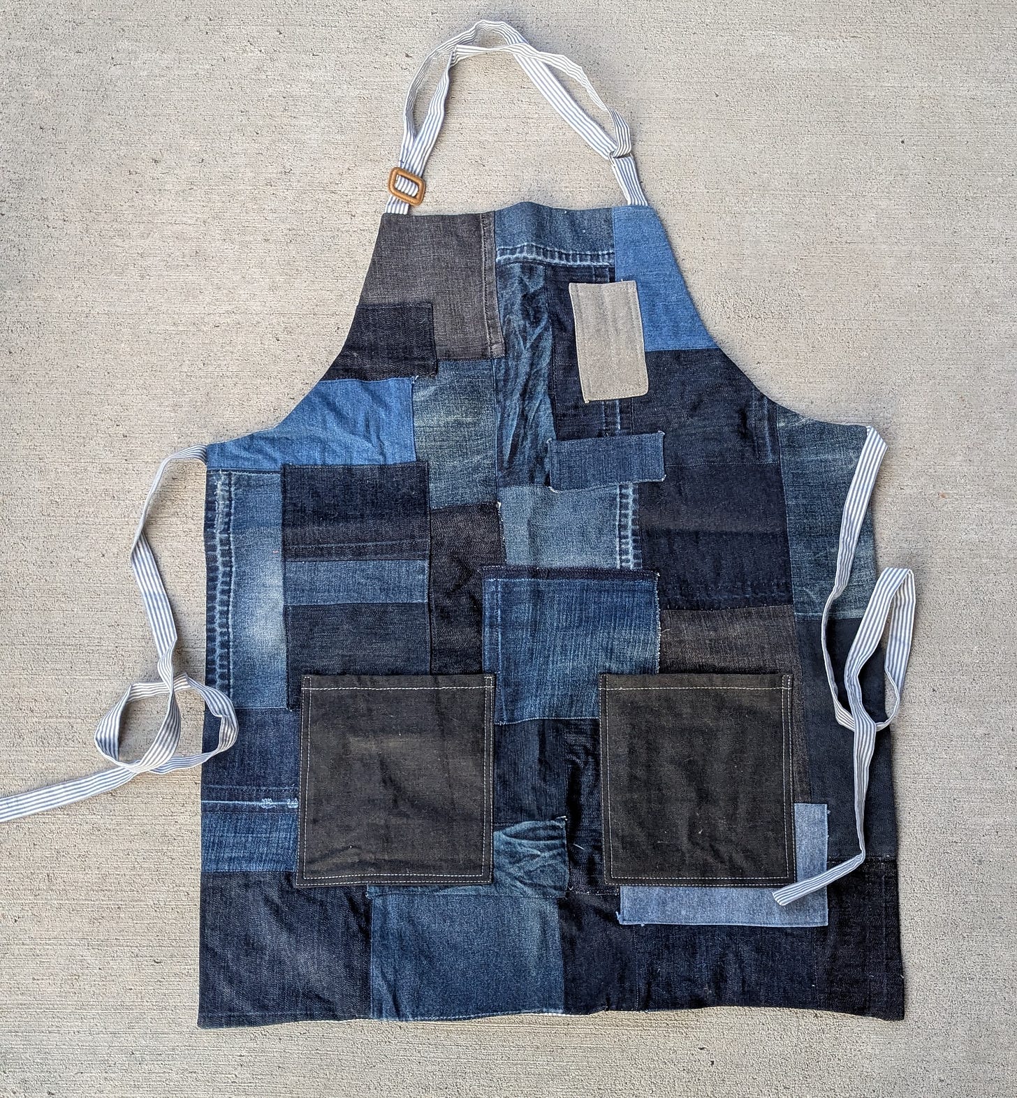 A note scribbled on the bottom of one page reminded me of a denim project I made around the same time I took that trip: a patchwork denim chef’s apron, made of all the jean scraps I brought home from my job—sewing alterations at Nordstrom Rack. The apron was meant to be a gift, but he and I parted ways before he ever received it. The apron is one of the only pieces I still have from my earliest days as a clothes maker—a true artifact of my past. Digging it out of the closet, finding it in pristine condition, and feeling something like awe about it fits right into the denim canon: a history marked by treasure hunters and vintage fanatics, pickers going through old farmhouse attics for hidden gems and museum-worthy rarities. It feels like a fitting end to this story, for now.