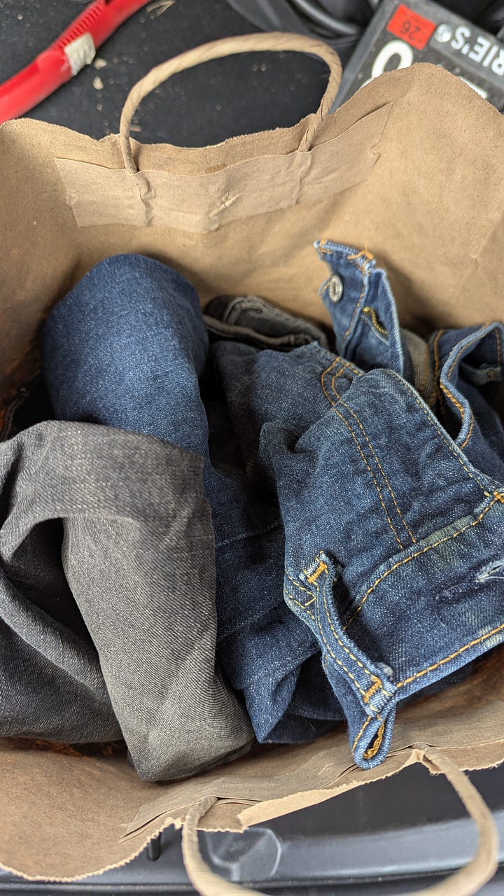 deadstock denim (unique!); scrap denim, a recent donation from a friend
