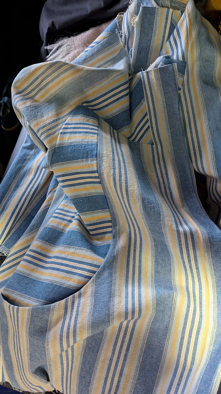 A deadstock denim jacket, which is a jacket I started years ago and set aside because I didn’t like where it was going; seeking a redemption story arc here!